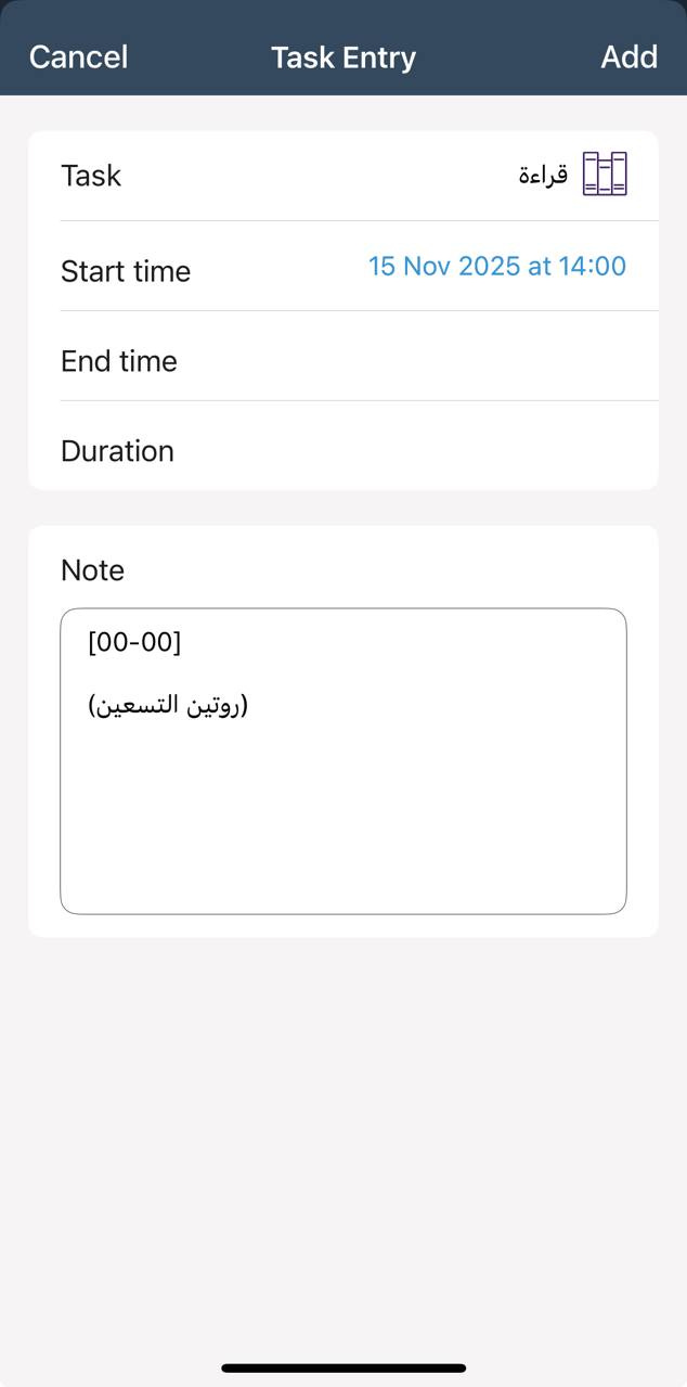 وكل مرة استعمال تعد إدخالًا، وهو تقييد جديد حده زمن البدء وزمن الانتهاء، وللمستخدم أن يعدل الوقت كما يشاء، حتى لو أراد تقييد شيء في يوم لمّا يأتِ بعد، وله أن يقيّد أكثر من مهمة في آن واحد، مثل الاستماع والقيادة.